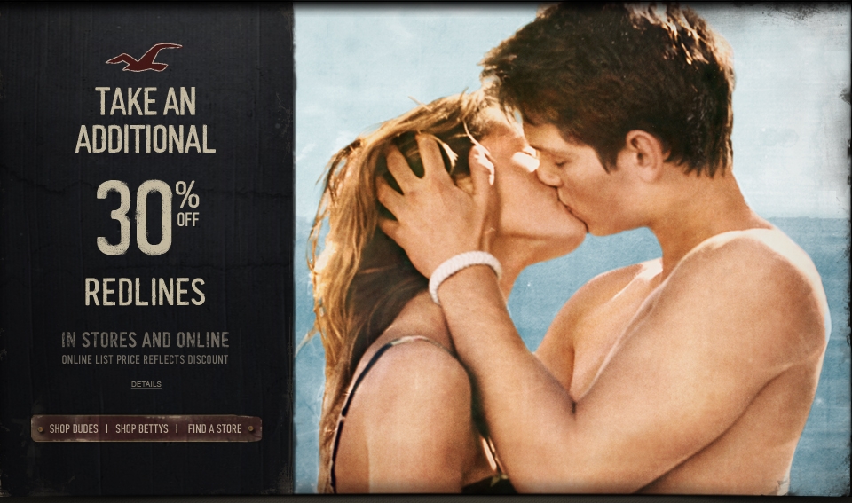 Abercrombie and Fitch Canada is having a take an additional 30% off Redlines and Redline Sale In Stores or Online. Prices are shown on its online list to reflects discount. You can get your items in mens, womens fashion.